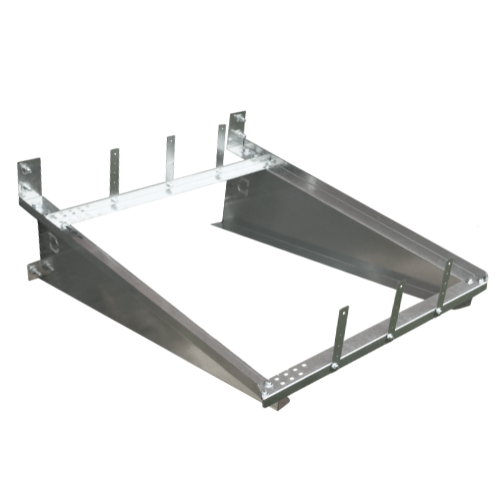 The Hurricane Air Brace is a direct-mount hanging bracket to support condenser units, heat pumps, and other HVAC equipment, particularly useful in residential or multi-family dwelling applications where flooding, snowfall, mud, and steep grades are a concern.